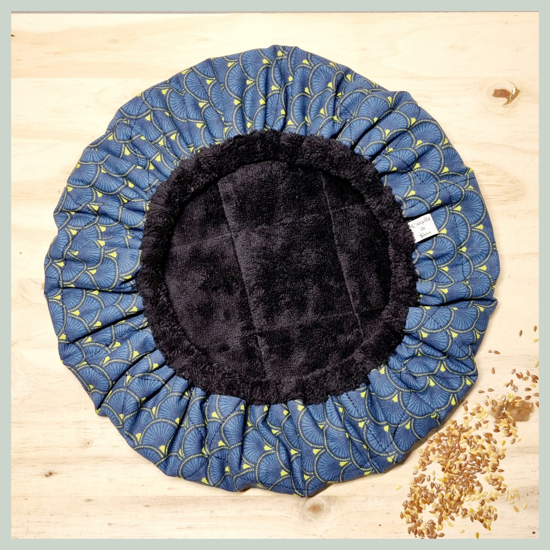 Conseils d'utilisation : Faire chauffer le bonnet au micro-ondes par tranches de 30sec en le retournant jusqu’à la chaleur souhaitée, mettre un verre deau de temps en temps lors de la chauffe pour réhydrater les graines de lin