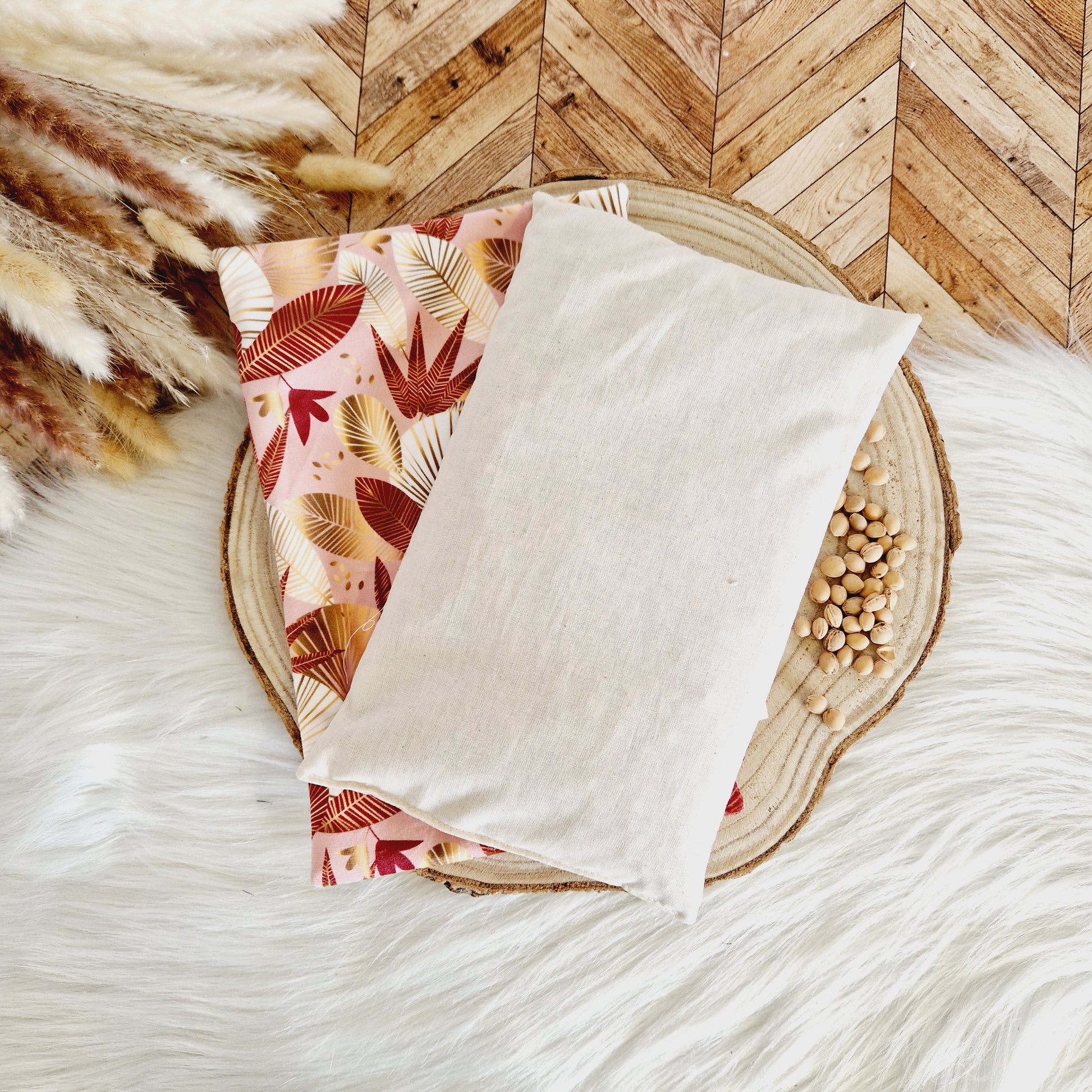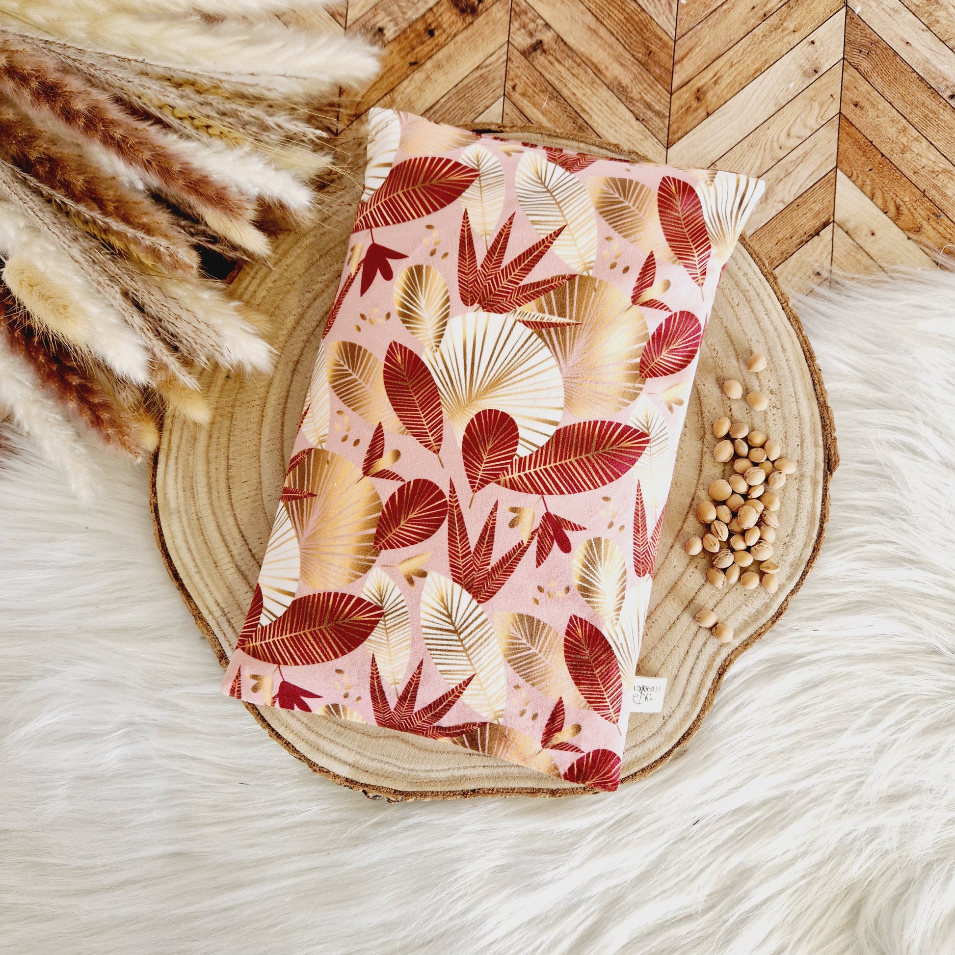 La bouillotte cervicales est garnie de graines de lin, de noyaux de cerise et d'un peu de lavande pour le coté décontractant.