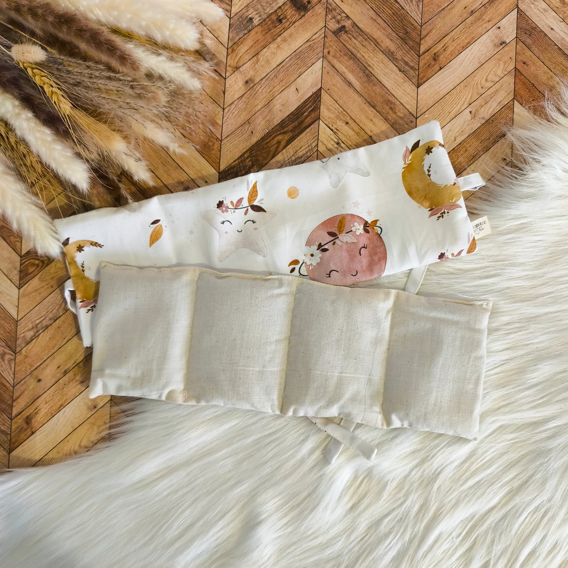 La bouillotte cervicales est garnie de graines de lin, de noyaux de cerise et d'un peu de lavande pour le coté décontractant.
