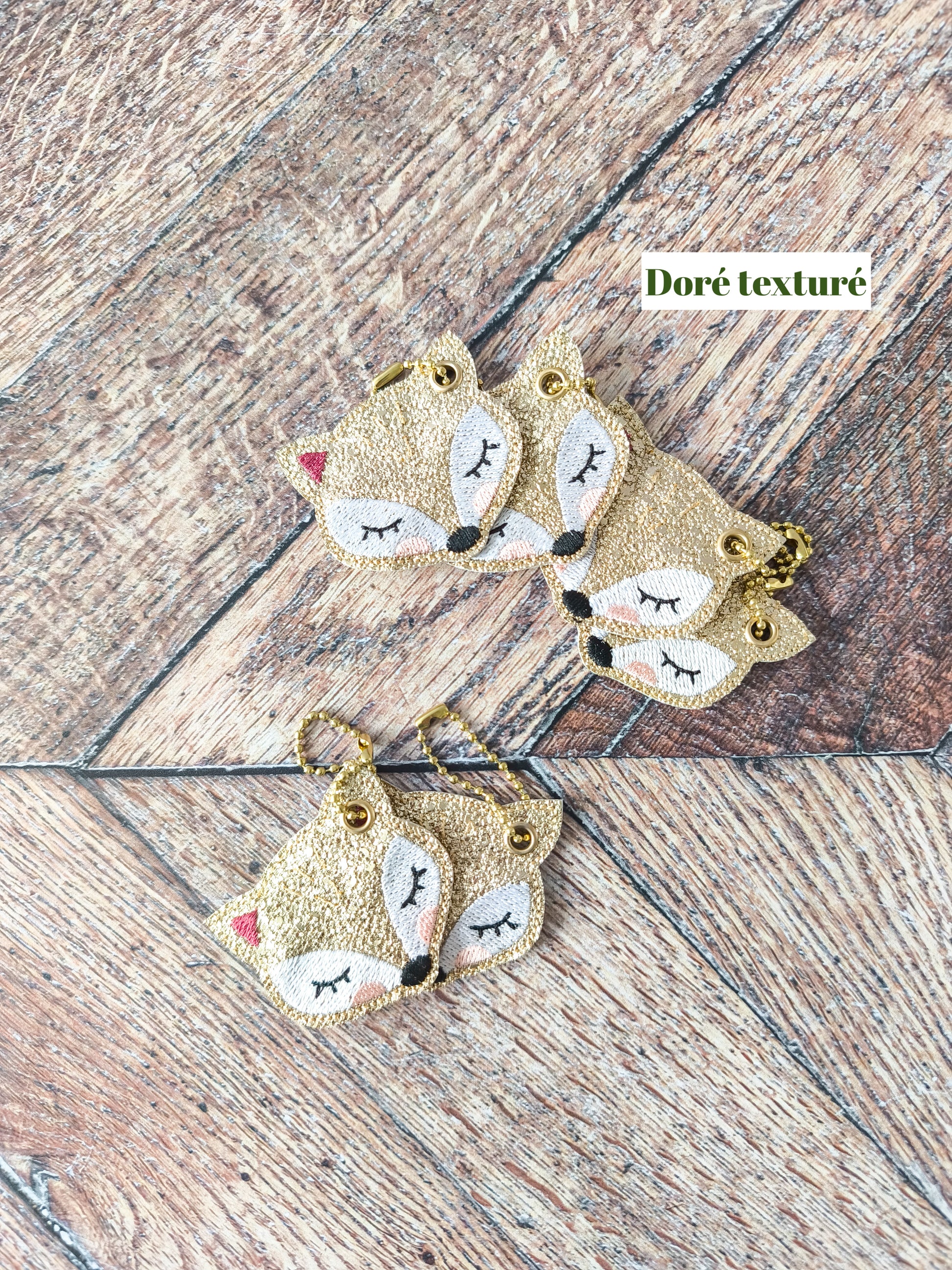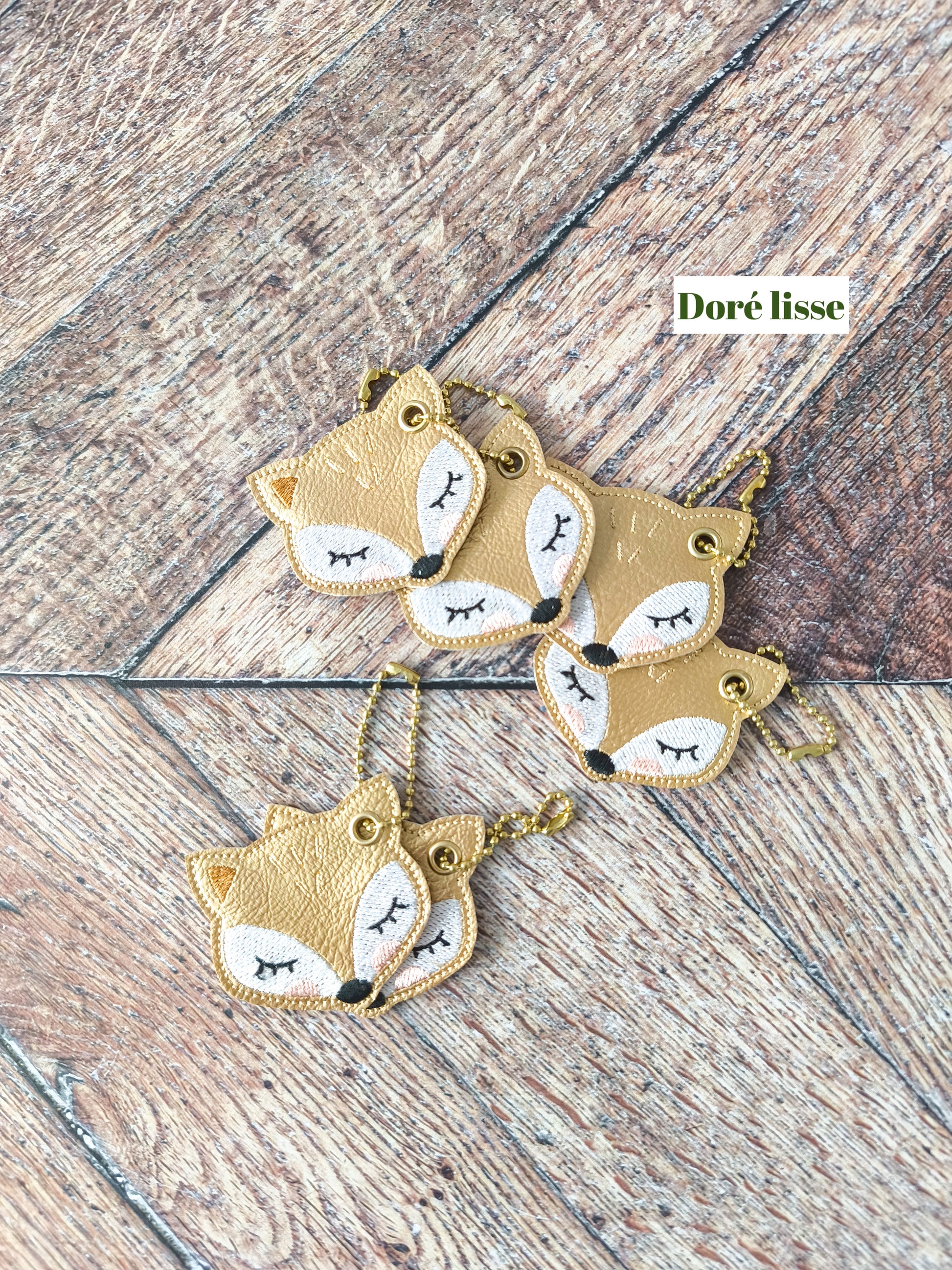 Porte-clés renard en simili cuir brodé