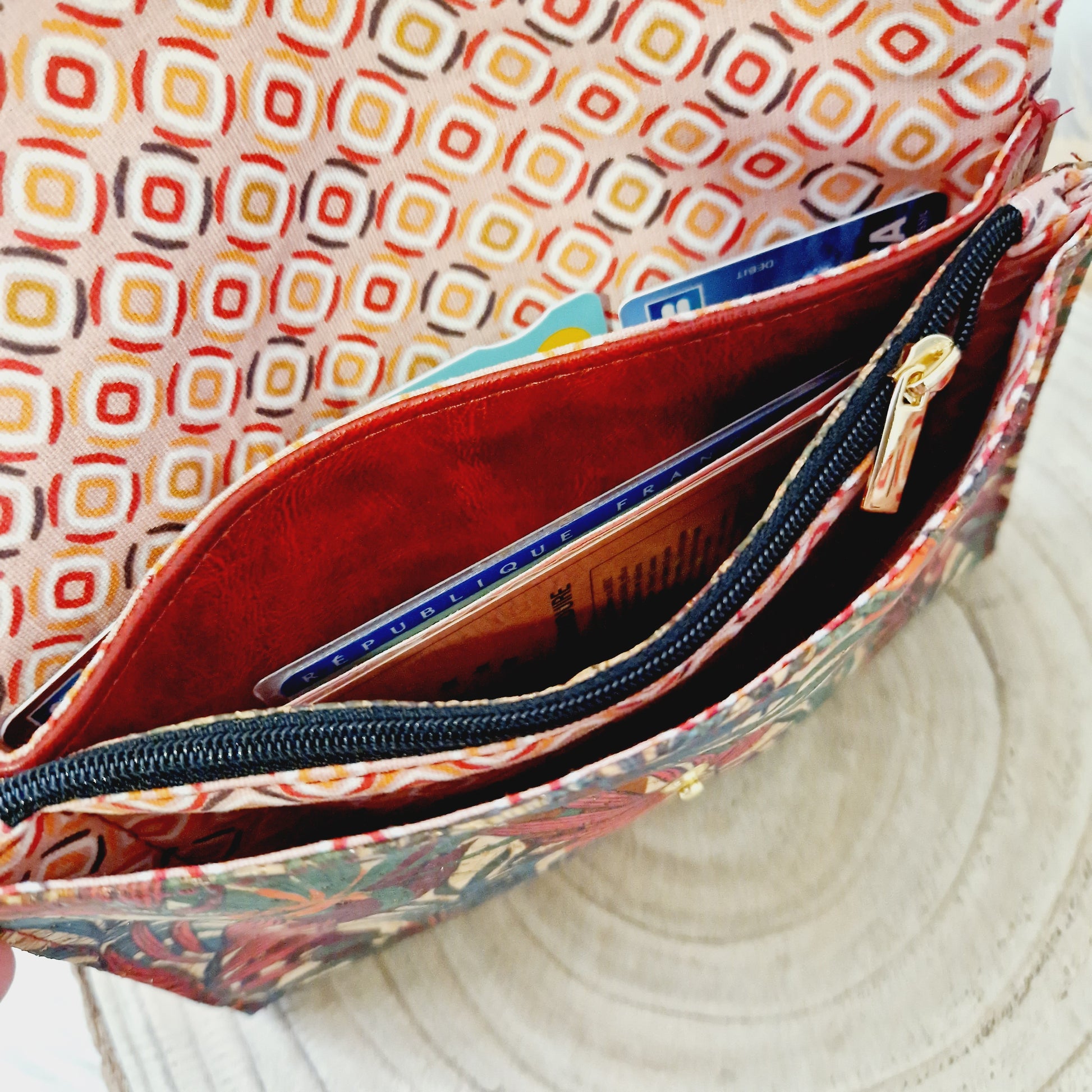 La pochette multi-poches en simili cuir et coton ou liège, conçue pour être à la fois une solution de rangement pratique et un porte-feuilles.