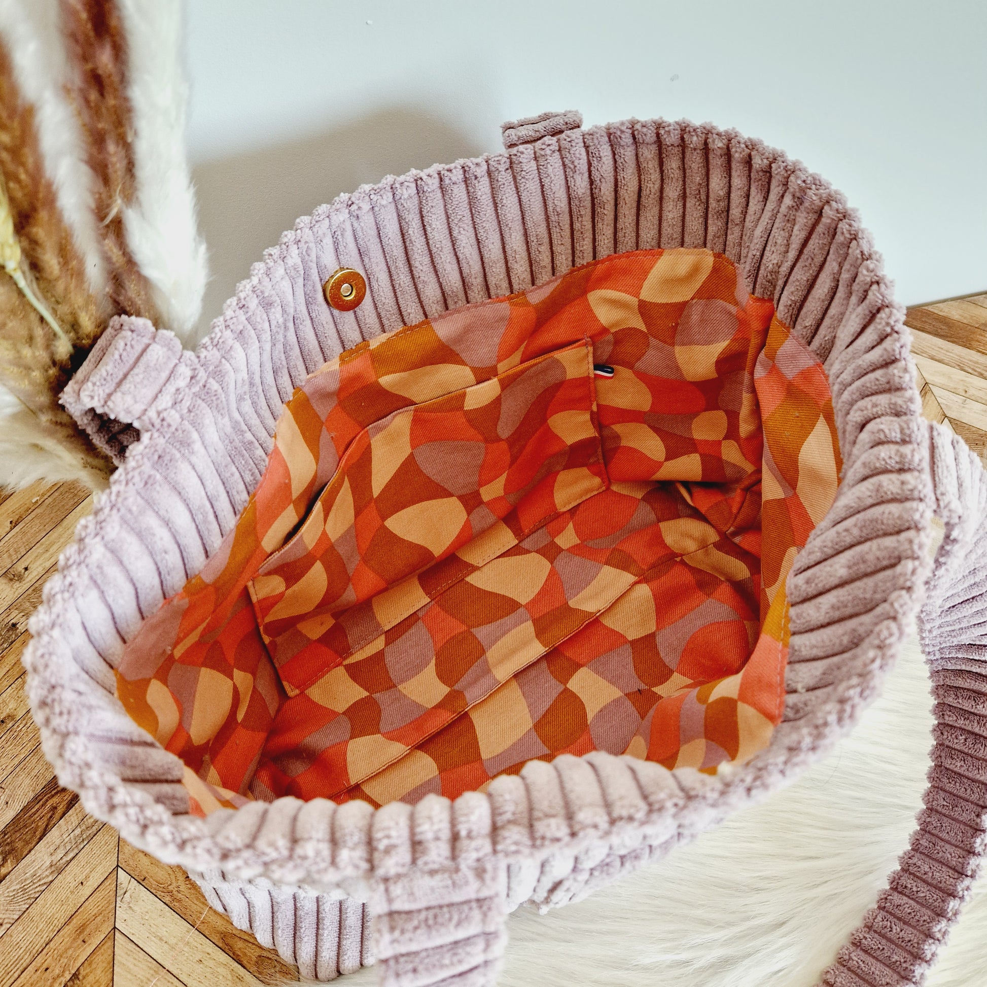 Disponible dans une variété de couleurs de velours et de motifs de tissu, ce sac allie fonctionnalité et style décontracté.