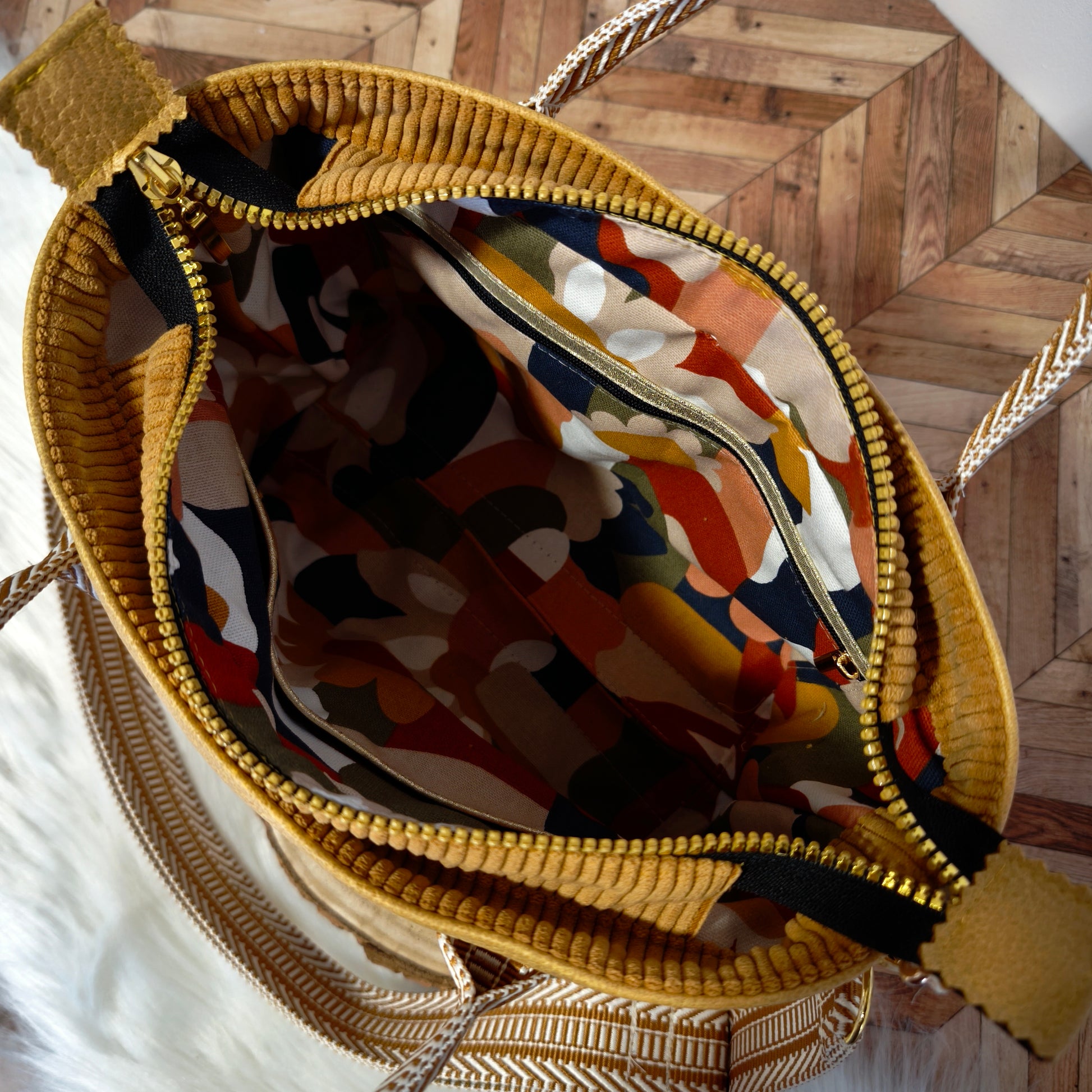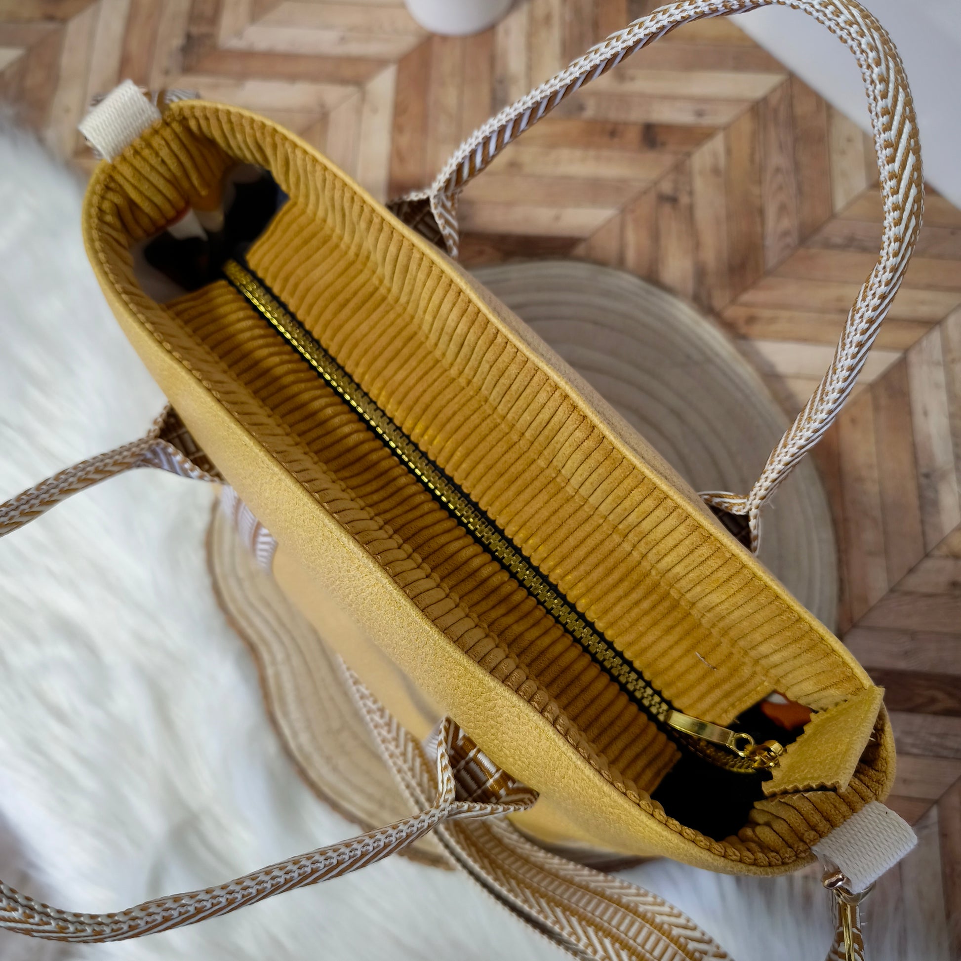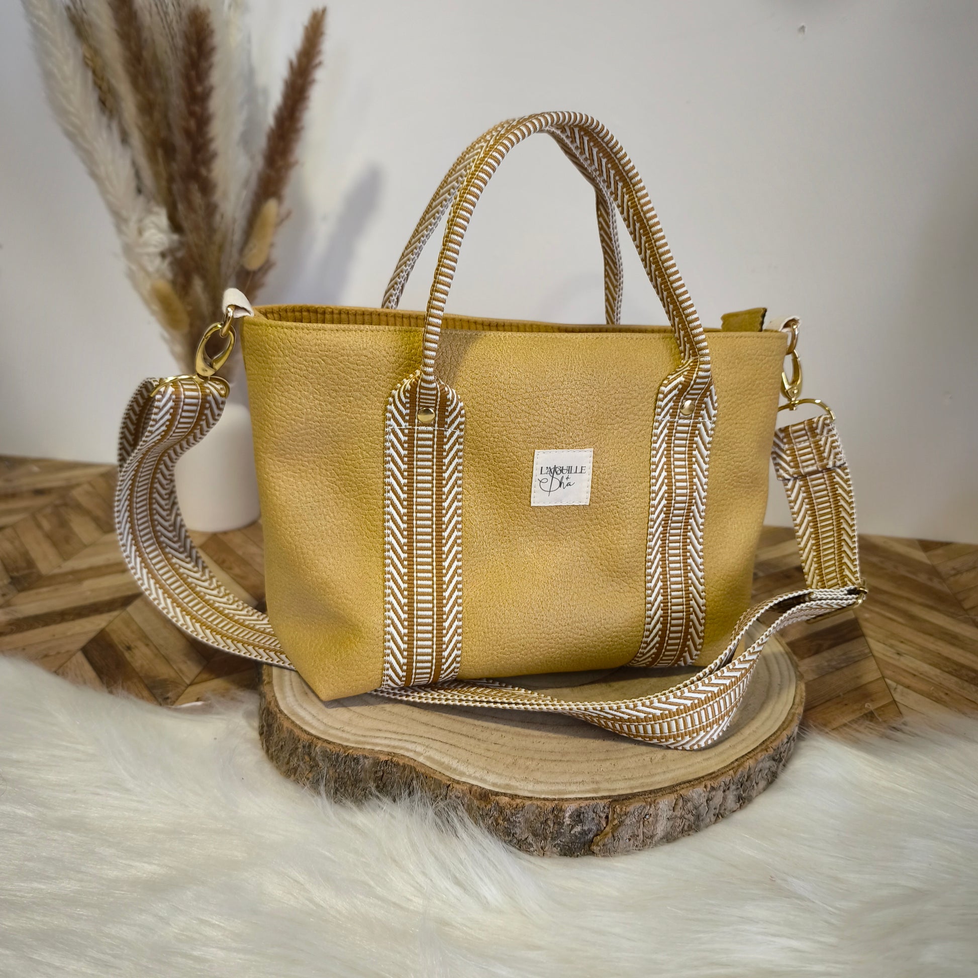 Sac à main en simili cuir jaune moutarde avec bandoulière geométrique- Élégant et original